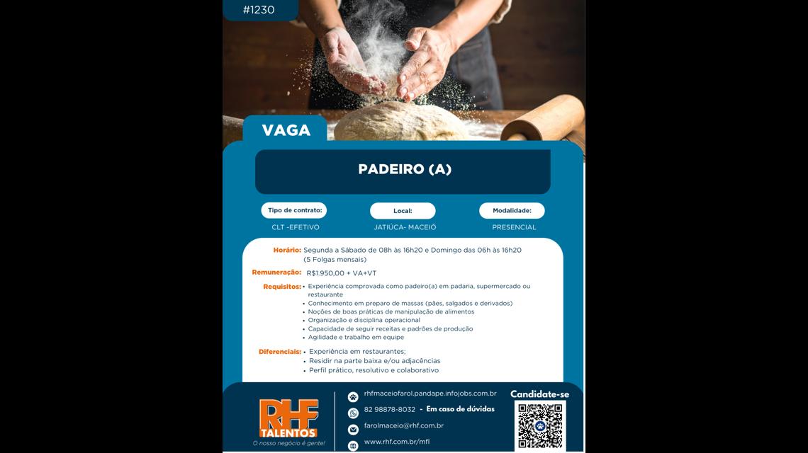 - Experiência comprovada como padeiro(a) em padaria ou restaurante